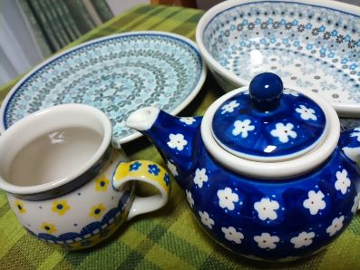 中身はご覧のとおり、ティーポット0.4L、マグカップ、24cmプレート、オーブンディッシュ。