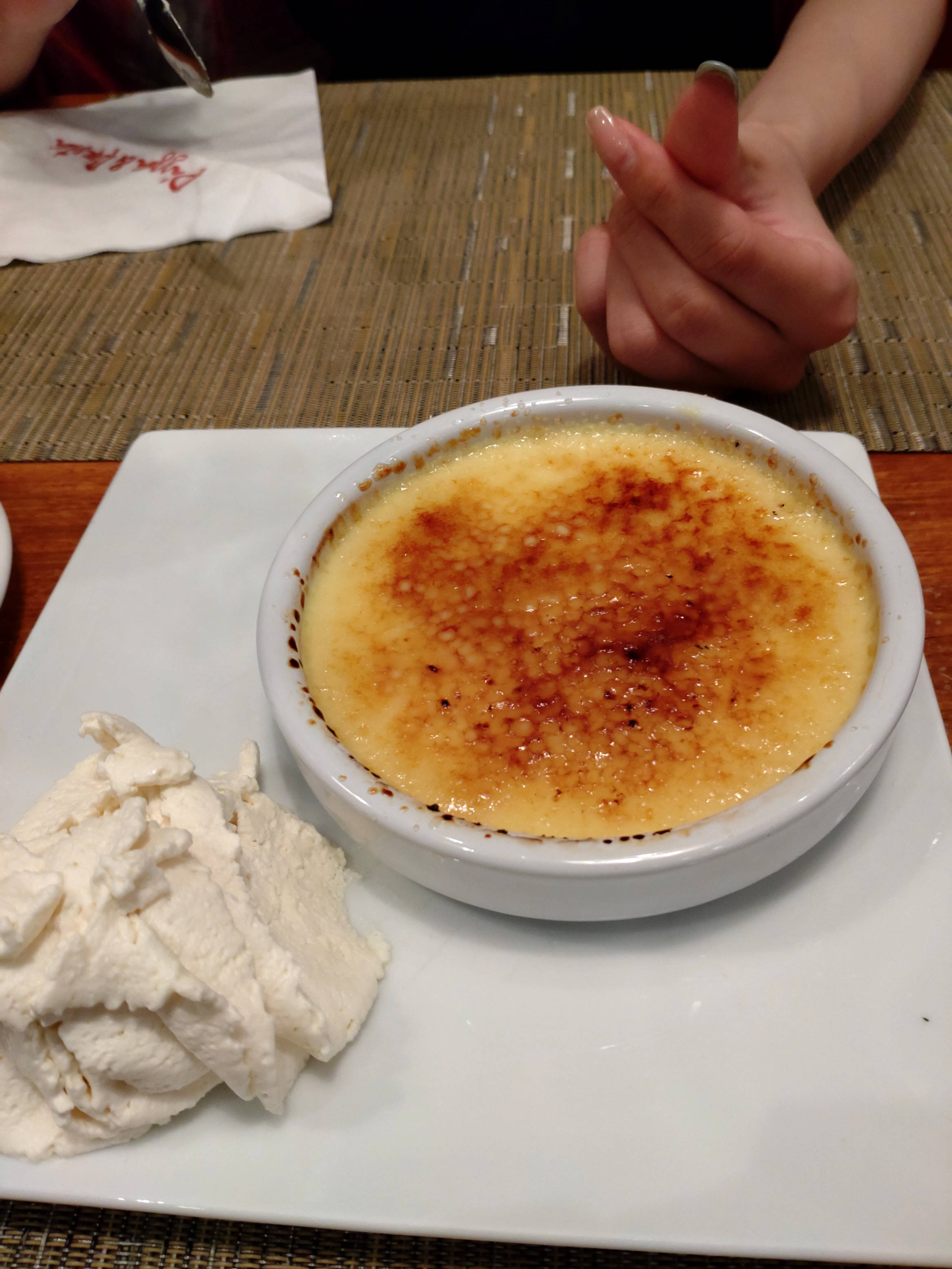 初日にも行ったレストランPizza & Pastaで、サーモンのリゾットとクリームブリュレ。