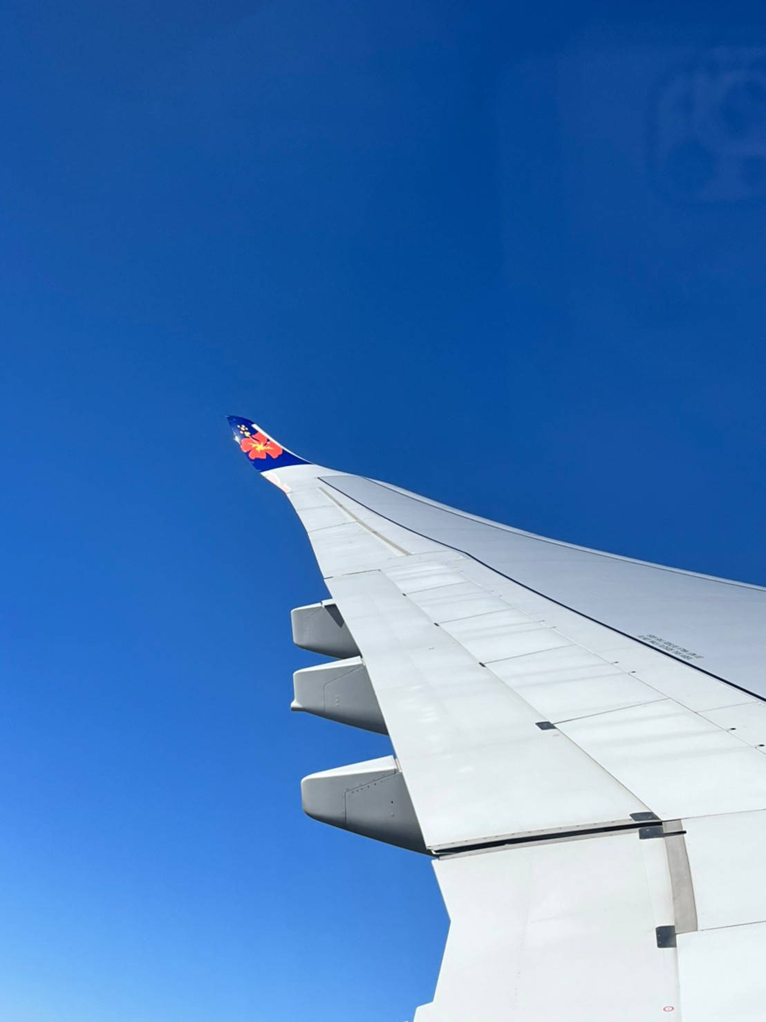 ハイビスカスがかわいいエアカラン航空の飛行機で一路ニューカレドニアへ。