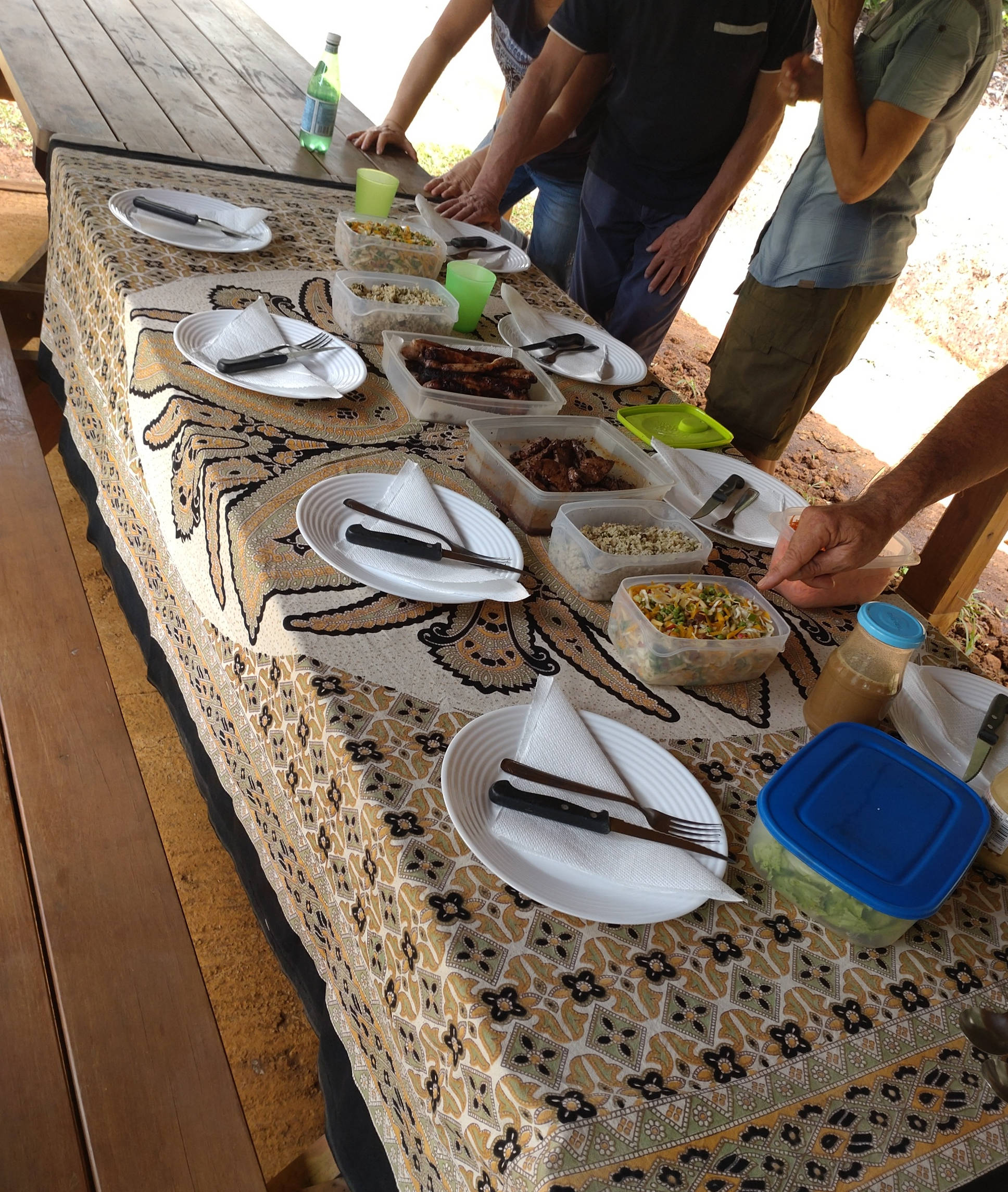 フランソワさんお手製のサラダと、その場で焼いたソーセージや鹿肉、バケットなどなど。